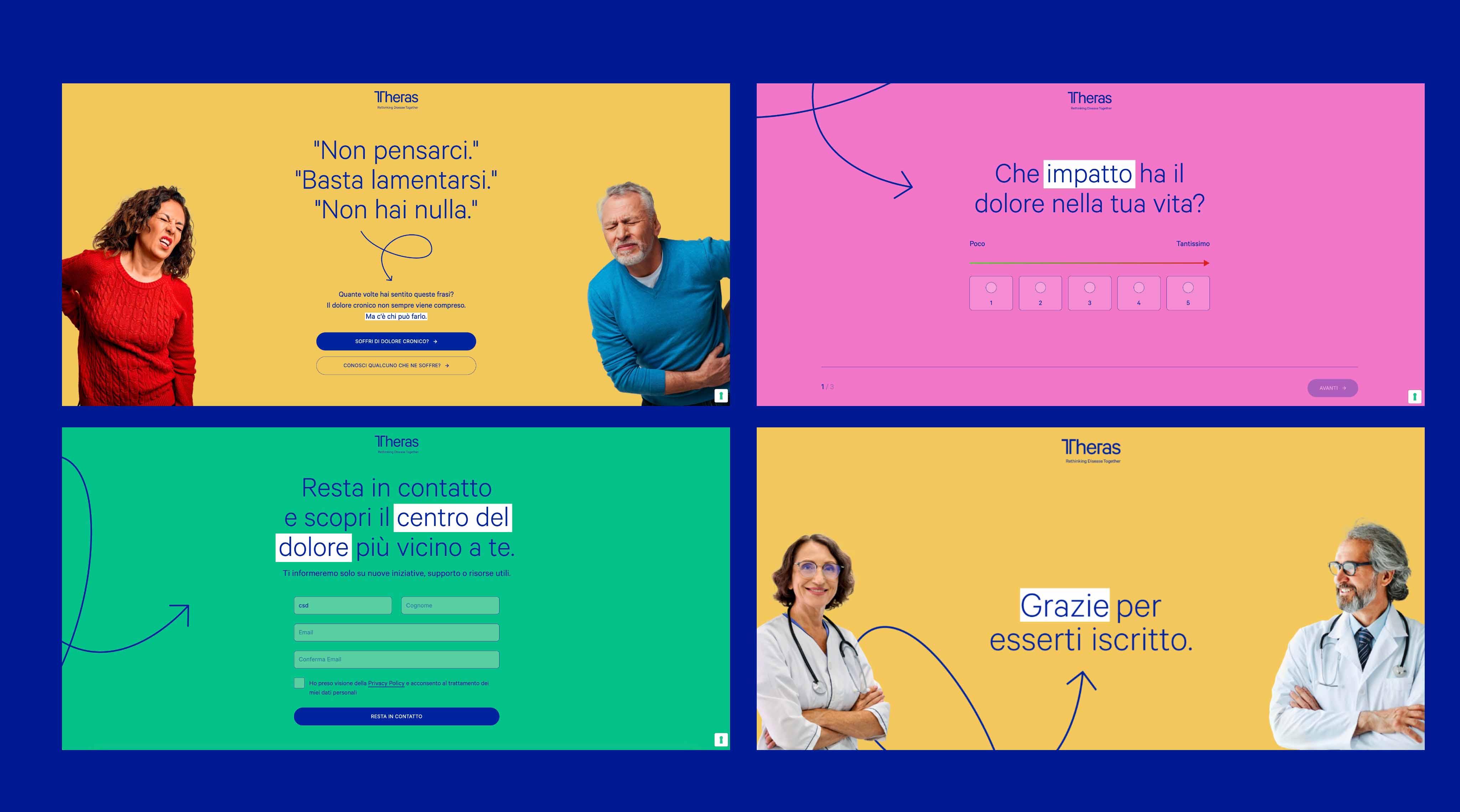 Theras - azienda specializzata nello sviluppo di tecnologie e servizi per la gestione di diabete, dolore cronico e obesità - si è rivolta a noi con una sfida tanto delicata quanto necessaria nel contesto sociale di oggi: aumentare la consapevolezza sul dolore cronico e facilitare il contatto tra pazienti e specialisti della terapia del dolore. Obiettivo: creare un vero engagement con i pazienti che convivono quotidianamente con il dolore cronico, una condizione spesso sottovalutata o non riconosciuta dal contesto sociale.